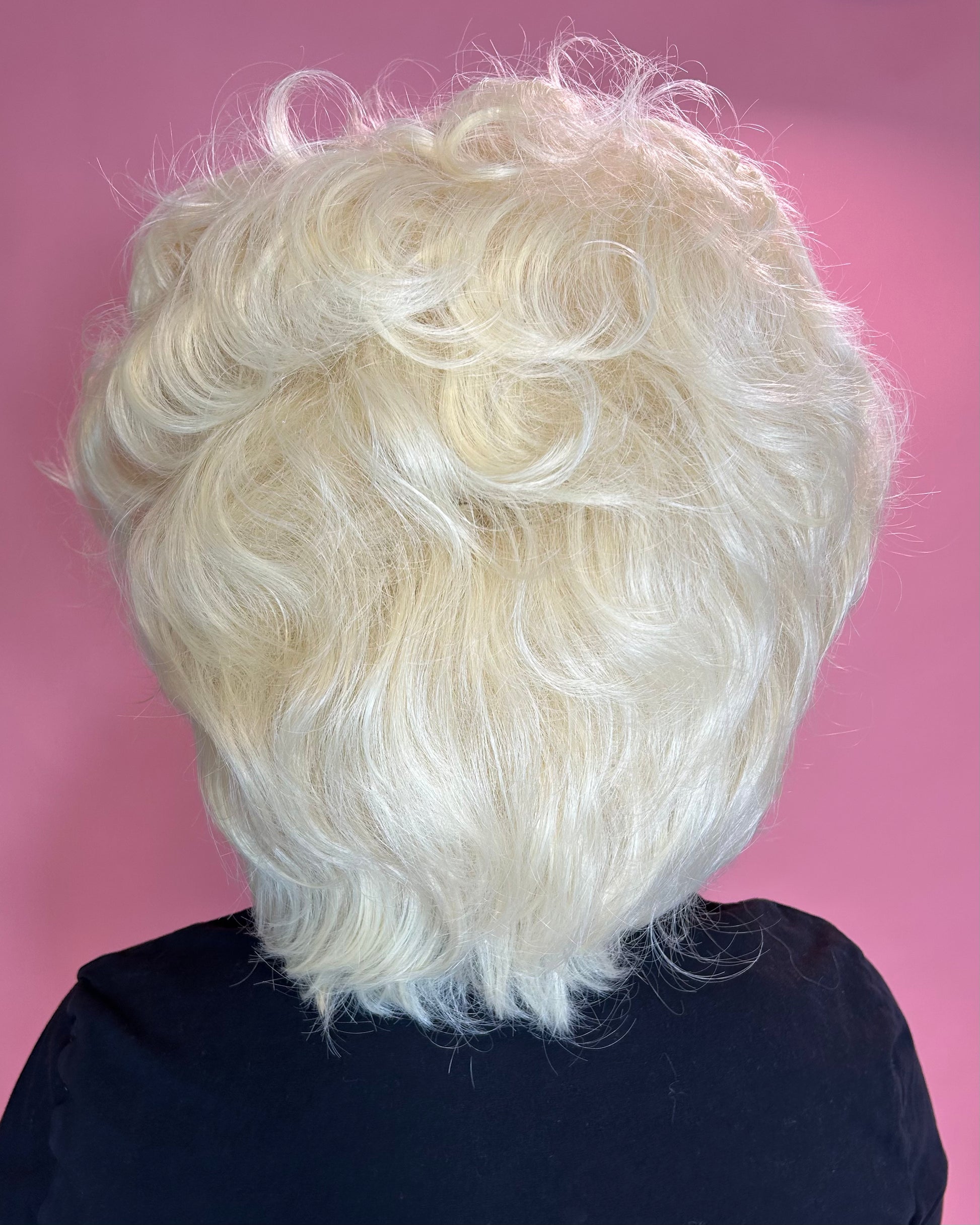 Boop boop e do we have this fabulous and flirty classic style. Be the burlesque queen of your dreams in this classic pin-up style. She is curled and styled into a fabulous and sexy vintage look. This wig is styled on a Starlet Premium wig so she has a hairline to die for.