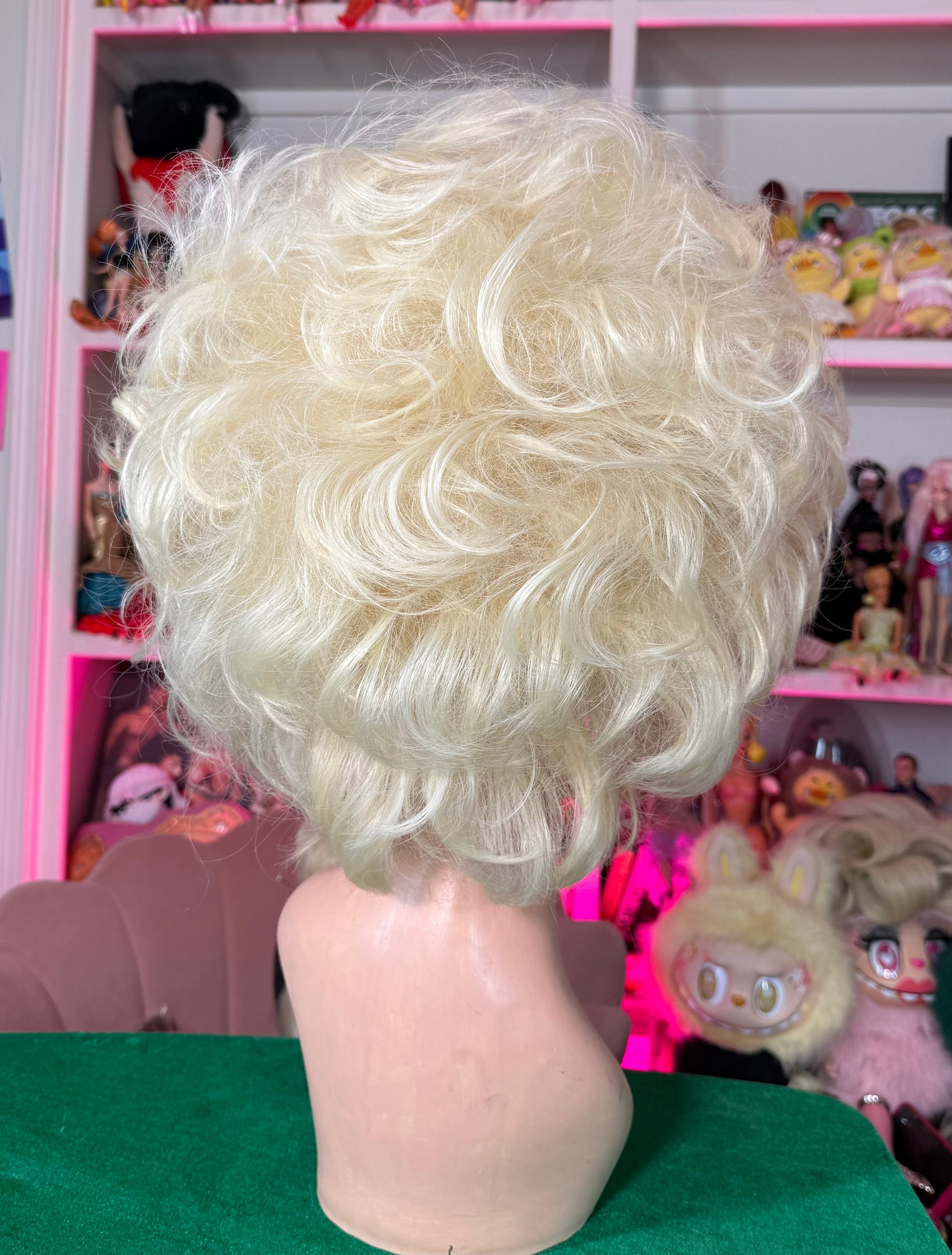 A fabulous wig inspired by ghouls of the 1950s. This wig is styled on a 613 BLONDE WIG.