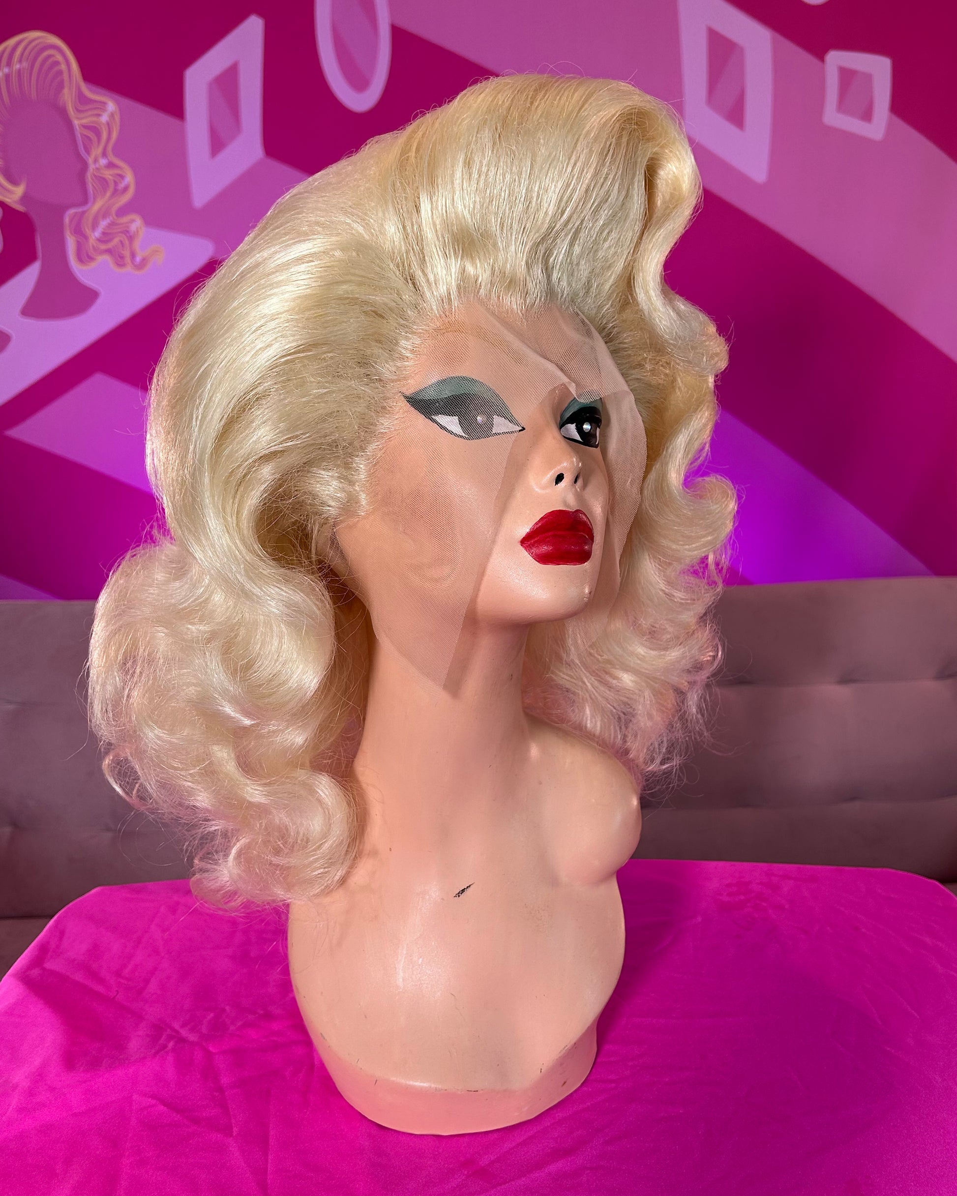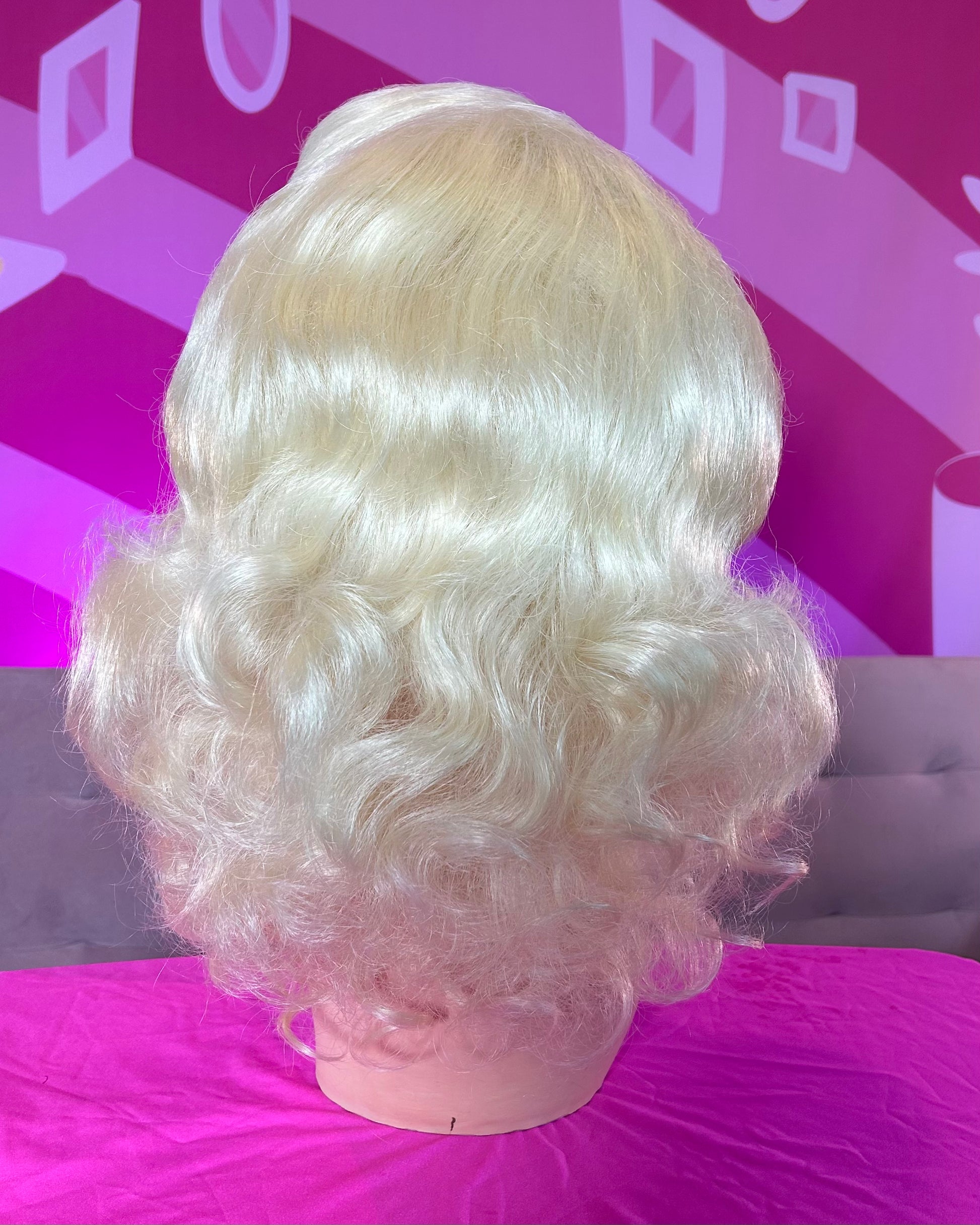 Synthetic lace front wig, dome cap in size medium, pale colored lace, and this hair is hand styled by me.