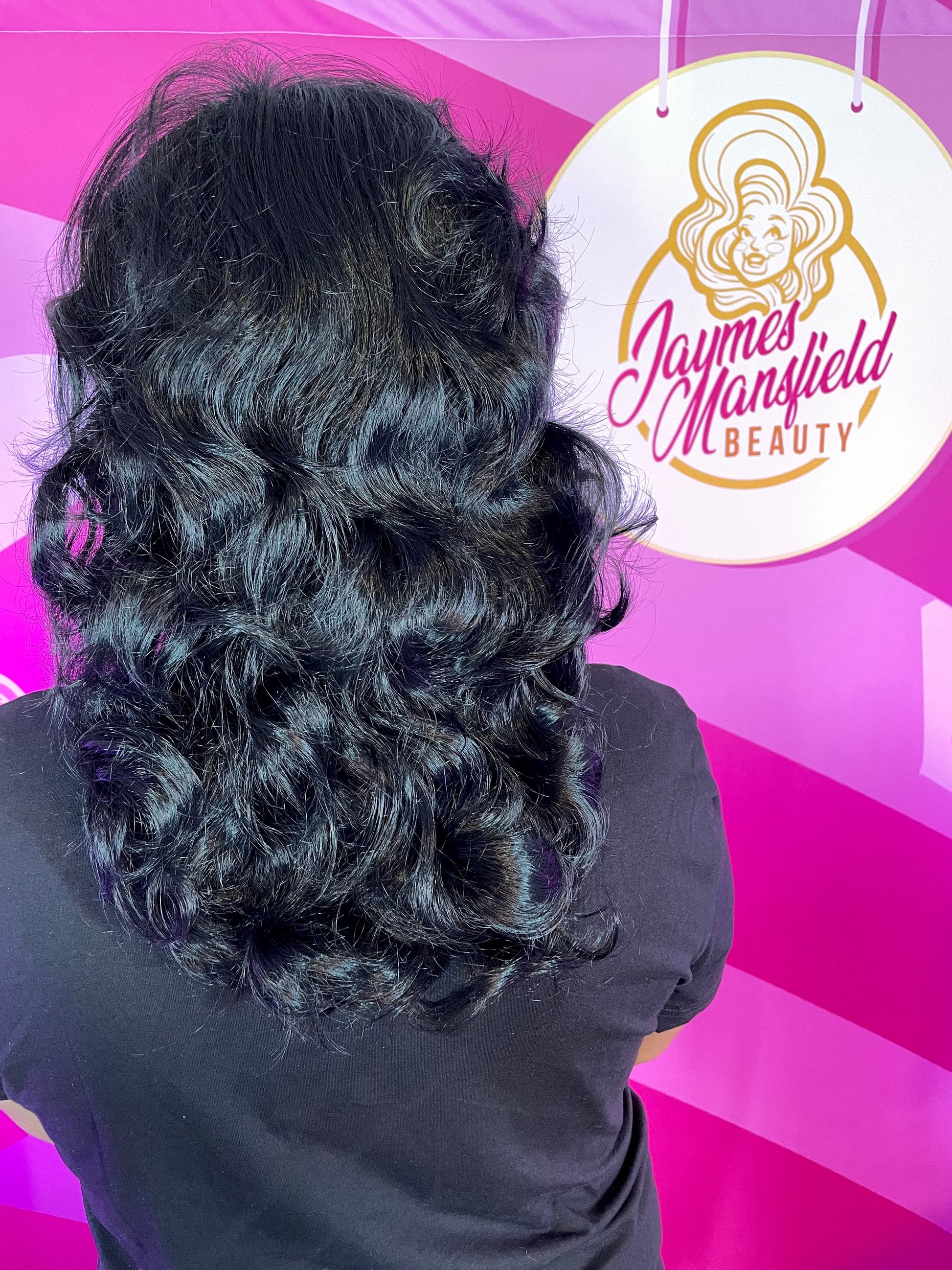 Well howdy, ain't she a fine lookin' wig! We have here the Pardon Me hard front! Now available in jet black. This wig is here to give you that classic country feeling. Pardon Me is permateased and curled, she can be brushed a number of ways to suit your needs.