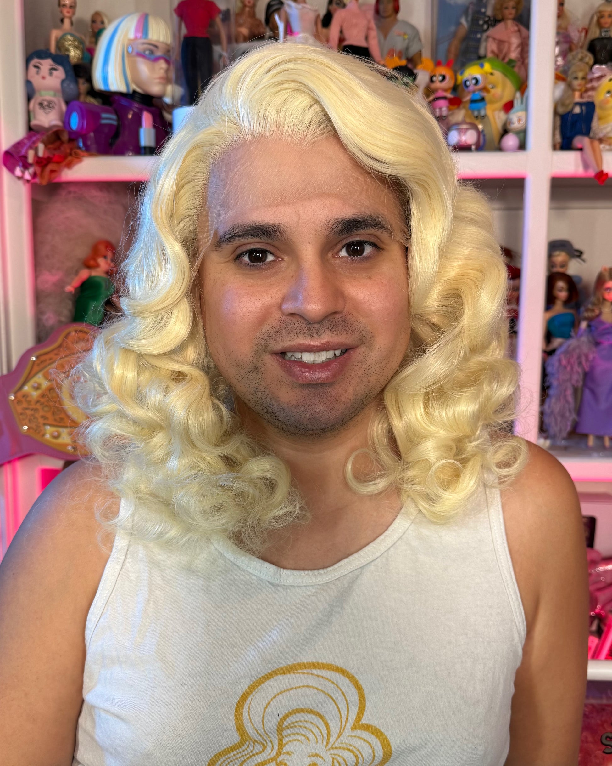 I am proud to present the new Vintage Splendor premium wig. This gorgeous new lace front wig is sure to give you that stage ready look be it worn as is or styled up. She is layered in short tiers a curl pattern that lends itself wonderfully to classic Hollywood styles or even big drag hair. I am proud to bring you my very own line of deluxe wigs. This wig was designed by me to suit a glamour queen's needs. She is a shoulder length, layered, with the sideburns of most. Frame your face with a soft hairline. And when she is teased out, she will blow your mind.